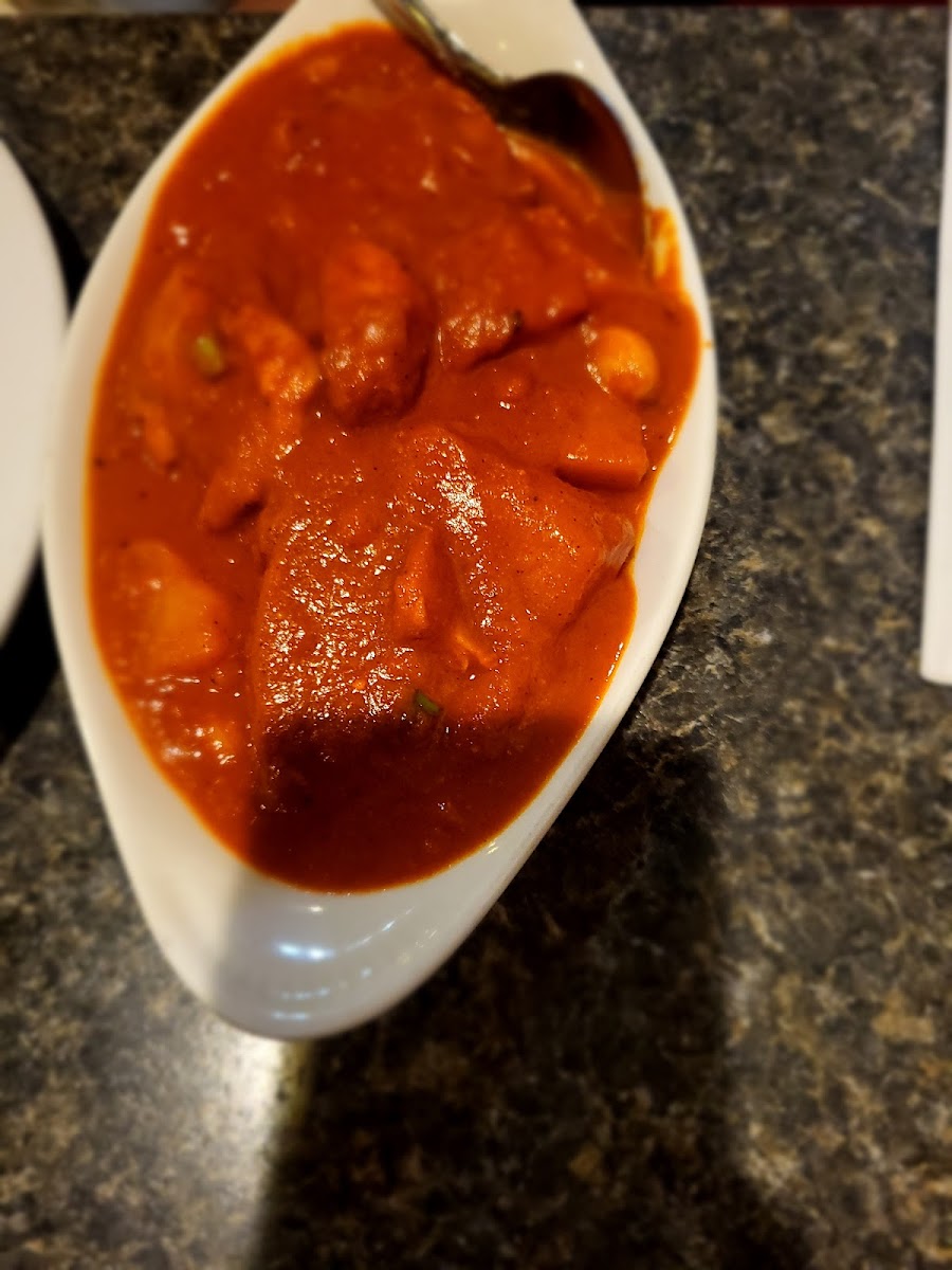 Chef's special recipe. Makhani is a mild creamy sauce that originated in Delhi. Makhani is made by heating and mixing butter, tomato purée and various spices (cumin, cloves, cinnamon, coriander and fenugreek) and finished with cream. Served with rice